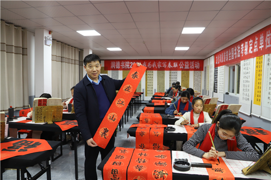 “春聯(lián)是我們中華民族獨(dú)有的文化符號(hào),象征著喜慶,蘊(yùn)含著吉祥。我為我家寫春聯(lián)公益活動(dòng)具有很強(qiáng)的廣泛性、群眾性、公益性,送祝福、亮成績(jī)與弘揚(yáng)傳承中華優(yōu)秀傳統(tǒng)文化相結(jié)合,在學(xué)生心中樹立了文化自信。”陳吳陸欣慰地說(shuō)。
