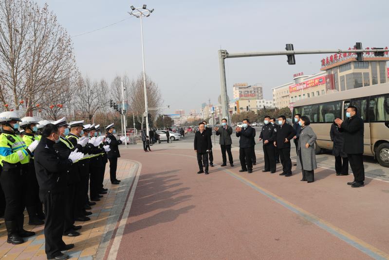 在縣人民廣場,最后王國璽、李錫勇一行看望慰問了正在執(zhí)勤的交警,與他們親切交談,對大家一年來作出的努力和貢獻表示感謝。勉勵廣大干警發(fā)揚甘于奉獻、勇于擔當?shù)木?,維護好全縣社會大局穩(wěn)定,確保全縣人民度過一個歡樂祥和的節(jié)日。