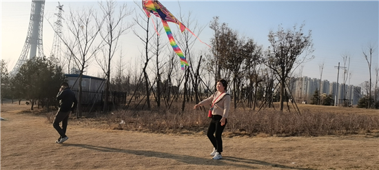 近日,我市氣溫明顯回暖,2月18日,位于周口大道東側(cè)的東方園林內(nèi),前來游玩的市民絡(luò)繹不絕,許多家長帶著孩子們紛紛放飛風(fēng)箏,感受春日的美好,斑斕的風(fēng)箏為早春增色不少。