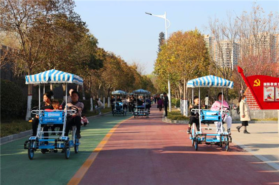 “今天真暖和?!?月19日,風(fēng)和日麗,周口國防教育園內(nèi)湖水蕩漾,四周的迎春花、梅花相繼開放,吸引了許多市民帶著孩子前往踏春賞花,接受國防教育。周口日報·周道客戶端記者 高洪馳 攝