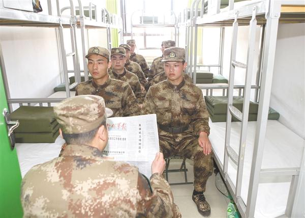 今年上半年的預(yù)定新兵役前訓(xùn)練,正值衛(wèi)國(guó)戍邊英雄官兵的先進(jìn)事跡被新聞媒體宣傳。沈丘縣人武部抓住這一向“衛(wèi)國(guó)戍邊英雄”學(xué)習(xí)的好時(shí)機(jī),組織應(yīng)征青年觀看前線“斗爭(zhēng)”視頻、緬懷英雄事跡、專題宣講教育、討論發(fā)言、簽名、向英雄致敬等,對(duì)應(yīng)征青年集中進(jìn)行教育。