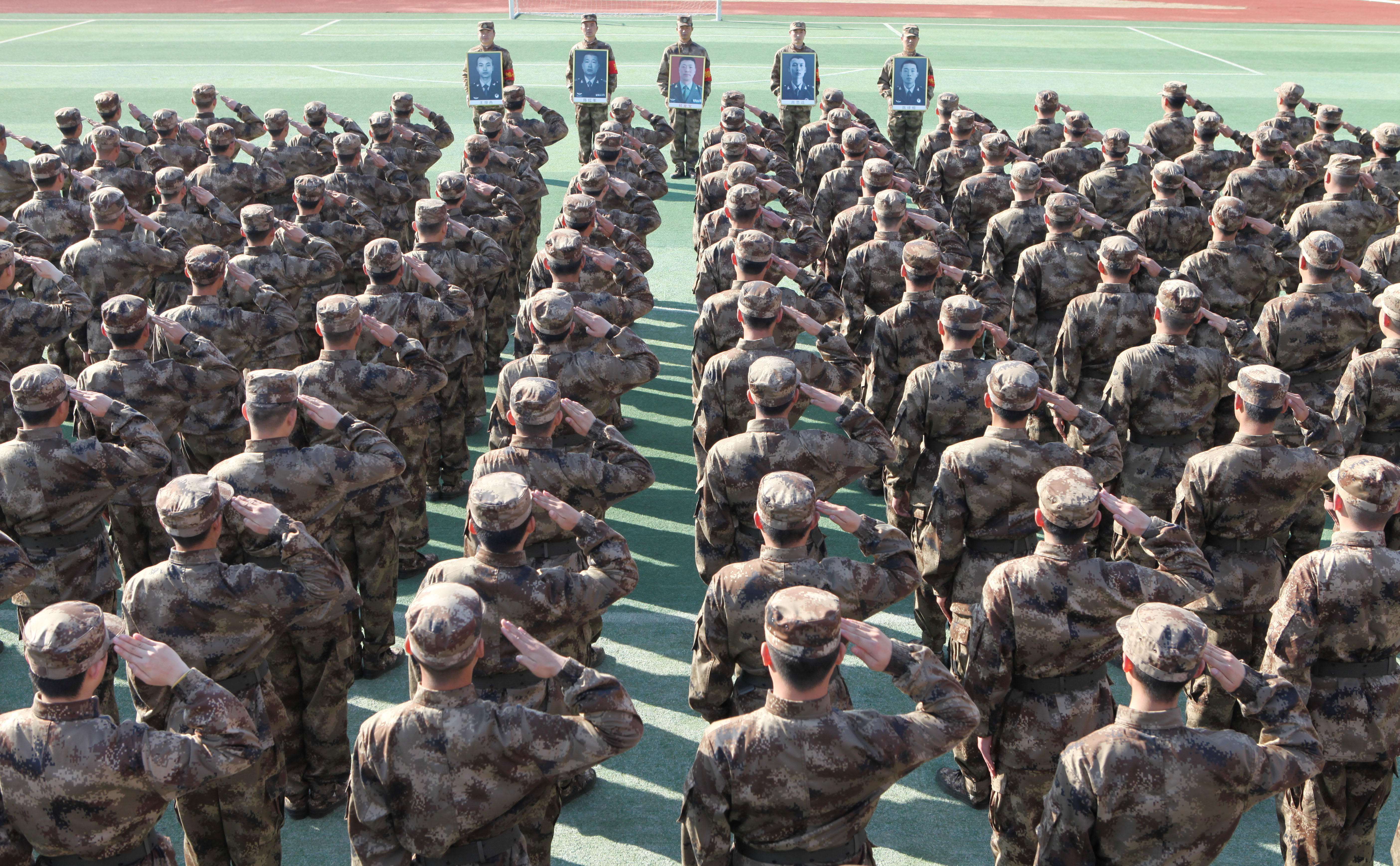 面對英雄的肖像,青年們舉起右手敬上一個莊重的軍禮!