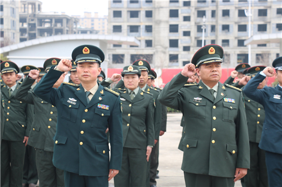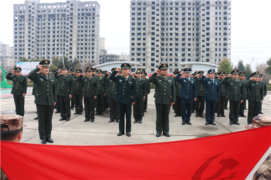 2月26日下午14時,西華縣人武部營區(qū)內,鮮紅的黨旗迎風飄揚。來自全縣17個鄉(xiāng)鎮(zhèn)、5個城區(qū)辦事處武裝部的全體專武干部黨員與該部現(xiàn)役干部、文職、職工黨員共計60余人集聚這里,隆重集體過“政治生日”。