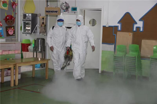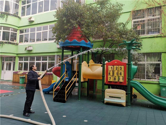 2月27日下午, 周口市市直幼兒園聯(lián)系周口市藍天救援隊專業(yè)消殺人員,對幼兒園的公共區(qū)域環(huán)境、大型玩具、走廊、活動室等場所逐步實施消殺,重點對樓道、樓梯扶手、衛(wèi)生間等關(guān)鍵區(qū)域?qū)嵤┟芗?,做到全面、徹底、不留死角?/p>