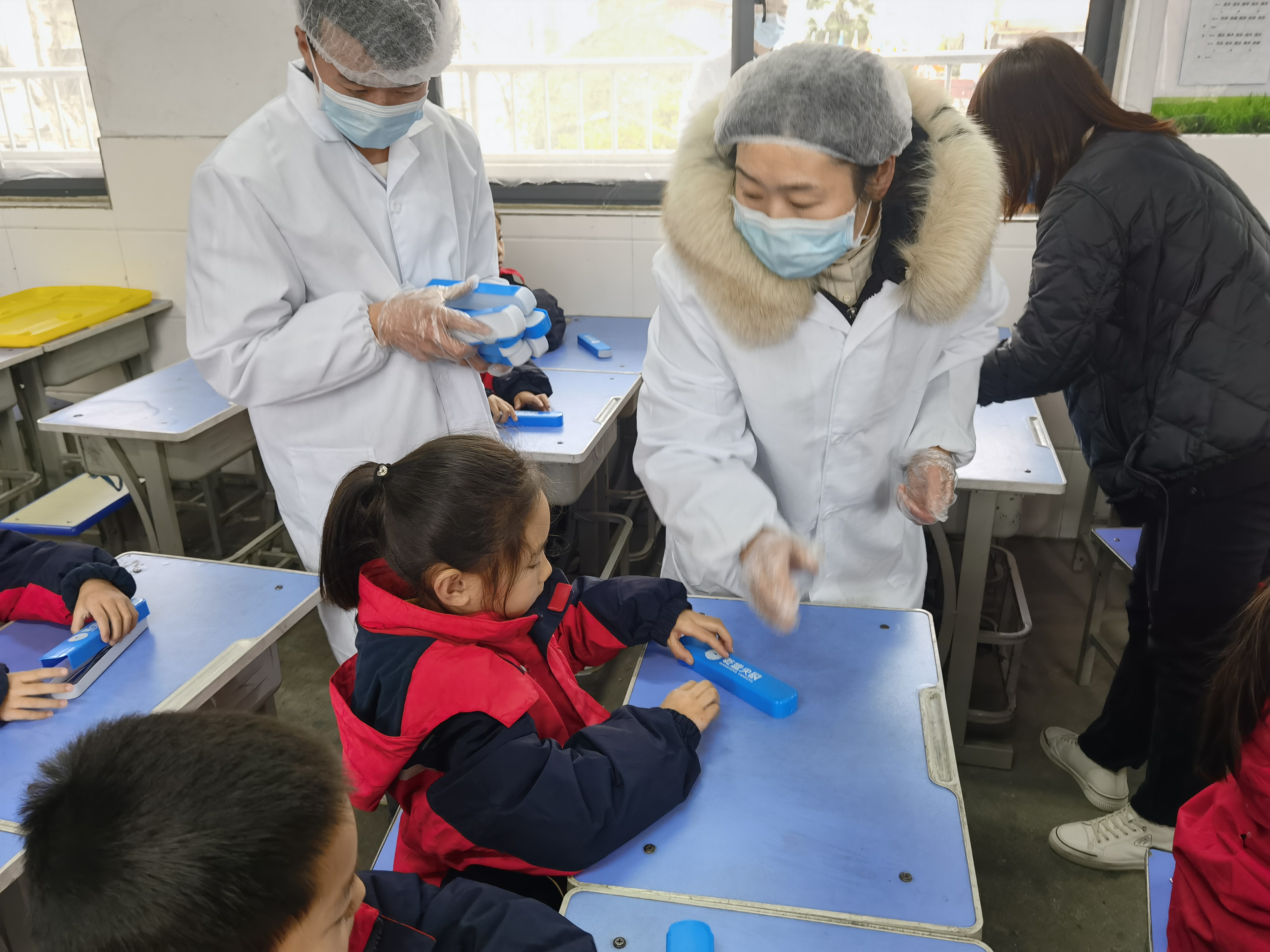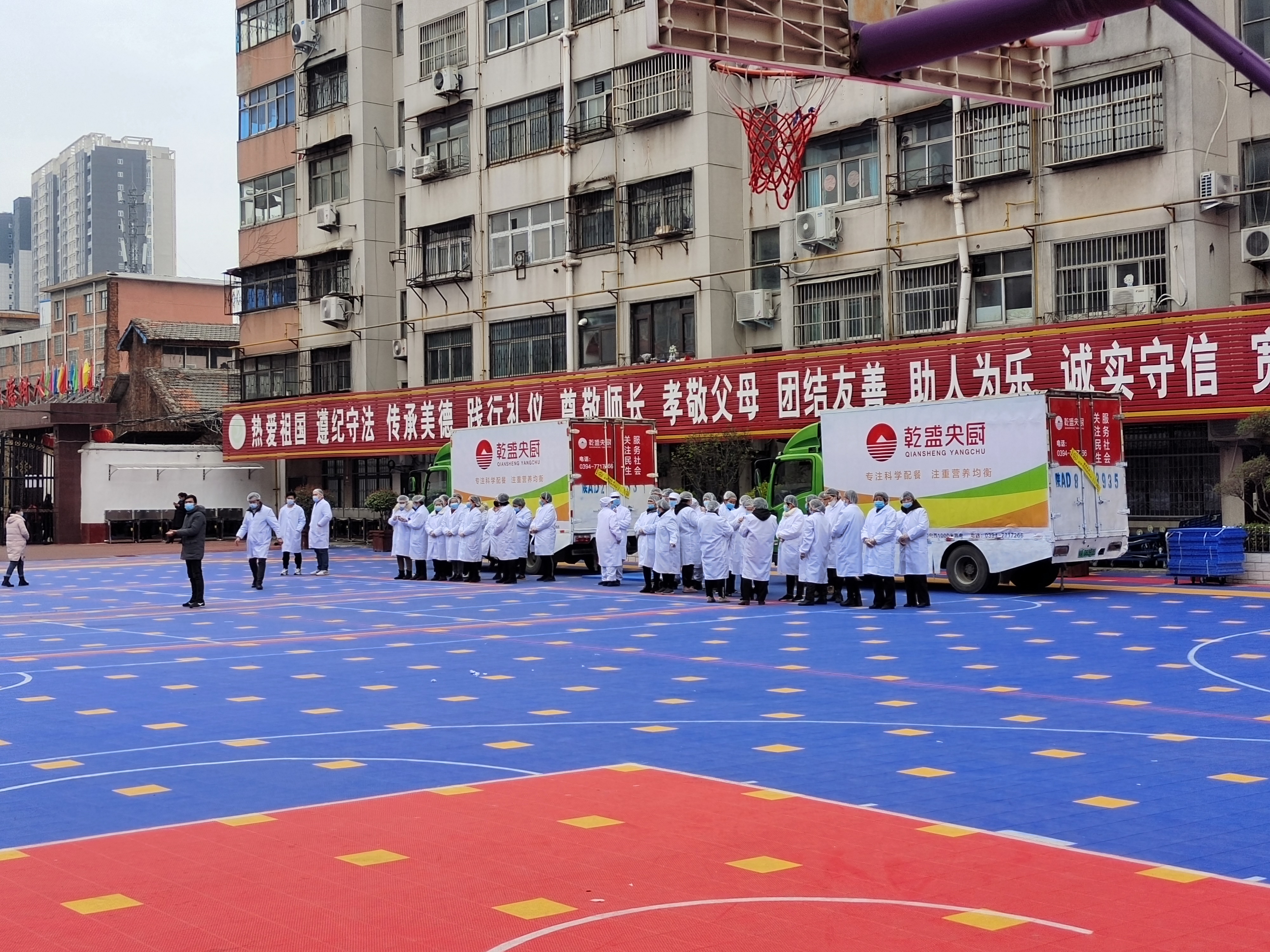 11時(shí)許,13000余份熱騰騰的飯菜即將送到周口市中心城區(qū)中小學(xué)生手中,直播團(tuán)隊(duì)對(duì)七一路二小的配送情況進(jìn)行現(xiàn)場(chǎng)直播。兩輛運(yùn)餐大卡車,20余名工作人員整裝待發(fā),乾盛央廚鄭州總公司的營(yíng)銷部負(fù)責(zé)人現(xiàn)場(chǎng)指揮調(diào)度七一路二小的發(fā)餐工作。揭掉卡車上的封條,留樣,測(cè)溫,裝車,按班分送,分發(fā)不銹鋼餐具,“哇!獅子頭??!”在孩子們的驚呼聲中,兩葷一素,一份米一份湯,熱氣騰騰地盛到孩子手中的餐具中?!昂⒆觽兂圆怀缘娘栄剑俊泵鎸?duì)各直播平臺(tái)上網(wǎng)友的提問(wèn),乾盛央廚鄭州總公司營(yíng)銷部負(fù)責(zé)人回答:“我們提前有準(zhǔn)備,飯、菜我們都免費(fèi)加,保證孩子們都吃飽,請(qǐng)家長(zhǎng)朋友們放心?!?/p>