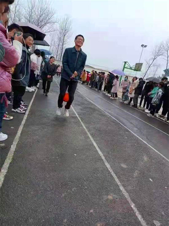 隨著裁判員一聲令下,比賽開始,參賽老師們快如風(fēng)、急如電,奮力沖向前方,把球接力給下一位隊(duì)員。接球的隊(duì)員等待已久,接過球立馬向前飛奔。整個(gè)操場(chǎng)上,加油聲、喝彩聲此起彼伏,熱鬧非凡。學(xué)生們擠滿了賽場(chǎng),用熱烈的掌聲和歡呼聲為老師們加油,期盼著自己的老師有精彩的表現(xiàn)。