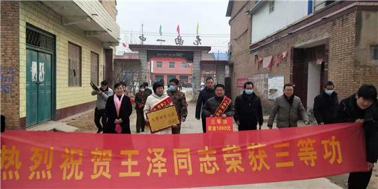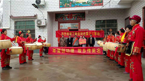 太康縣龍曲鎮(zhèn)的4名現(xiàn)役軍人在部隊榮立“三等功”,日前,太康縣龍曲鎮(zhèn)退伍軍人服務(wù)站站長、市人大代表劉志華在太康縣軍人事務(wù)局領(lǐng)導的帶領(lǐng)下,吹著嗩吶、打著腰鼓、扯著橫幅,把立功喜報和慰問金,送到龍曲鎮(zhèn)張山行政村張鵬舉、黑李王行政村丁帥龍、軒莊行政村師行光、河坡行政村王澤家中,營造了一人當兵、全家光榮的風尚,堅定了軍人建功立業(yè)的信心。