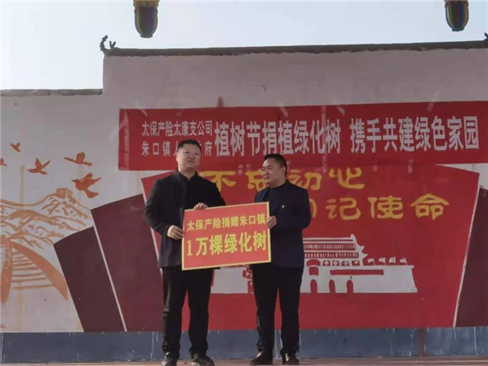 “這楸樹(shù)作為行道綠化,真不賴(lài),現(xiàn)在栽上澆點(diǎn)水就能活……”在太康縣朱口鎮(zhèn)周寨村參加捐贈(zèng)儀式的洼陳村村民代表張紅飛說(shuō)。3月12日,植樹(shù)節(jié)當(dāng)日,太康縣朱口鎮(zhèn)與太平洋保險(xiǎn)財(cái)產(chǎn)保險(xiǎn)公司周口支公司在周寨村舉行了“植樹(shù)節(jié)捐植綠化樹(shù),攜手共建綠色家園活動(dòng)”,太平洋保險(xiǎn)財(cái)產(chǎn)保險(xiǎn)公司為朱口鎮(zhèn)捐贈(zèng)綠化樹(shù)10000棵,助力朱口鎮(zhèn)建設(shè)綠色家園。太平洋保險(xiǎn)公司周口支公司總監(jiān)豆威、總經(jīng)理趙磊和鎮(zhèn)長(zhǎng)江海洋等出席了會(huì)議,全鎮(zhèn)52個(gè)村黨支部書(shū)記、100多名群眾代表參加了會(huì)議。