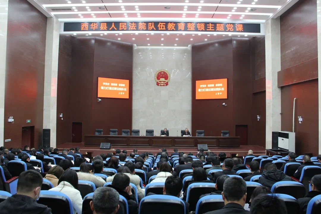 為進(jìn)一步推動(dòng)隊(duì)伍教育整頓工作走深走細(xì)走心走實(shí),營(yíng)造學(xué)的氛圍、干的氛圍,3月19日,西華縣人民法院黨組書記、院長(zhǎng)王贊華以《學(xué)黨史、悟思想、促整頓——著力打造過硬法院隊(duì)伍》為題,為全院干警講授專題黨課。院領(lǐng)導(dǎo)班子成員及全院干警參加。