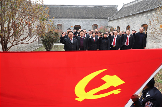 戰(zhàn)爭(zhēng)的硝煙早已散去,烈士的英名與浩然正氣長(zhǎng)存。在吉鴻昌將軍的塑像前,朱仲文領(lǐng)誓,全體干警面對(duì)鮮紅的黨旗莊嚴(yán)宣誓,重溫入黨誓詞。