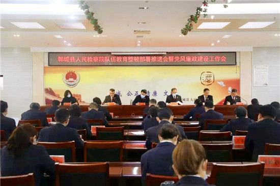 3月11日,鄲城縣人民檢察院召開隊(duì)伍教育整頓部署推進(jìn)會暨黨風(fēng)廉政建設(shè)工作會。會議深入學(xué)習(xí)貫徹習(xí)近平新時代中國特色社會主義思想,特別是習(xí)近平法治思想,全面貫徹落實(shí)全國、全省、全市、全縣政法隊(duì)伍教育整頓動員部署會和高檢院、省院、市院檢察隊(duì)伍教育整頓動員部署會暨黨風(fēng)廉政建設(shè)會議精神??偨Y(jié)2020年縣檢察院全面從嚴(yán)管黨治檢工作,分析新形勢新任務(wù),對縣檢察院檢察隊(duì)伍教育整頓和今年的黨風(fēng)廉政建設(shè)工作統(tǒng)籌作出安排部署。