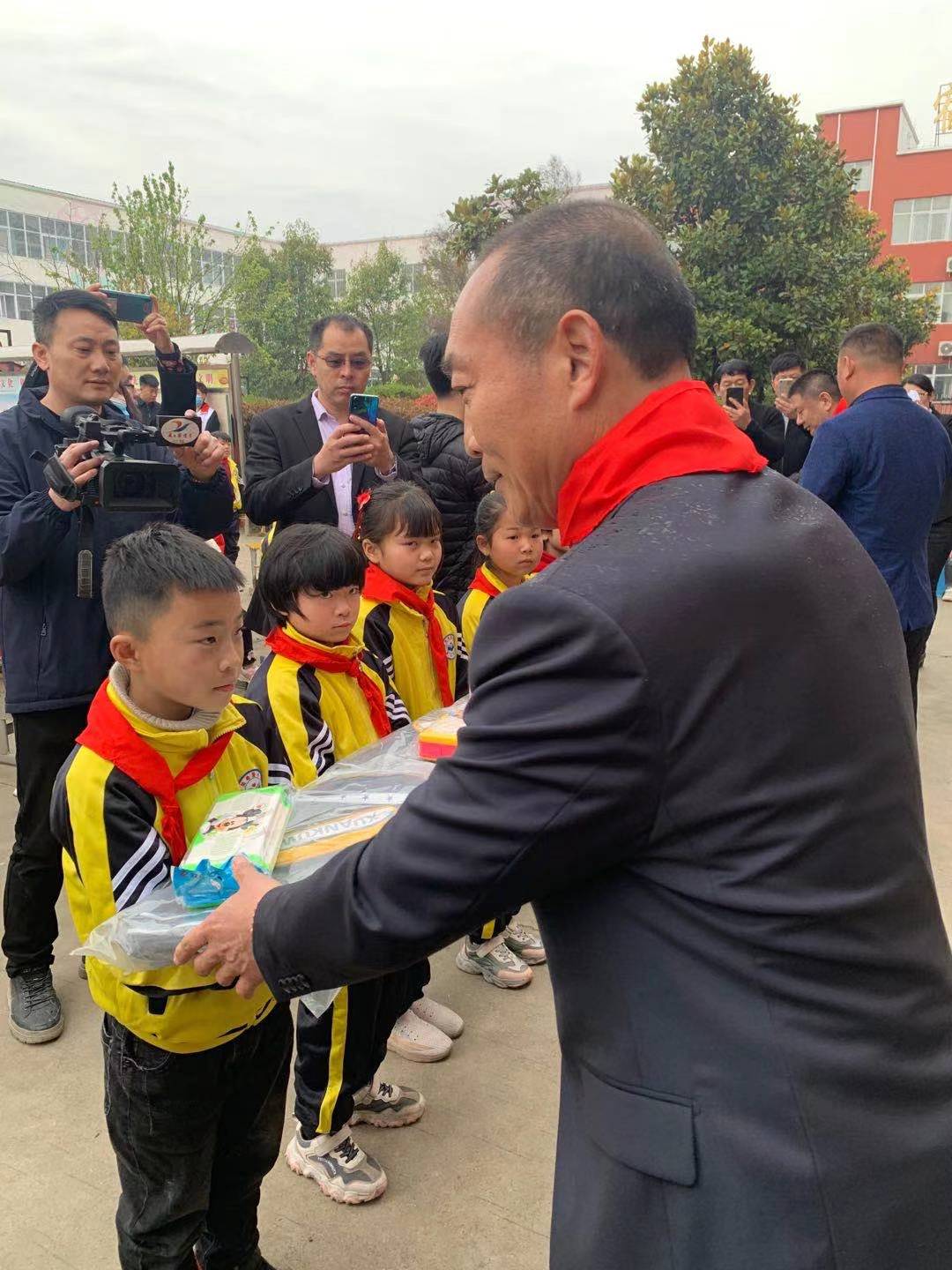 方凱說,自己在取得成功以后,始終沒有忘記社會(huì)上的弱勢(shì)群體,沒有忘記留守兒童,沒有忘記孤寡老人,堅(jiān)持捐款捐物幫助他們渡過難關(guān)。10多年來,累計(jì)捐款捐物近2000萬元。今天,我為希望小學(xué)捐贈(zèng)價(jià)值18萬元的校服,為30名學(xué)生每人發(fā)放書包、文具和500元慰問金。在這里,我可以告訴大家,今天來希望小學(xué)是第一次,但不是最后一次。今后我會(huì)年年來、經(jīng)常來。方凱的話音未落,現(xiàn)場(chǎng)響起熱烈的掌聲。