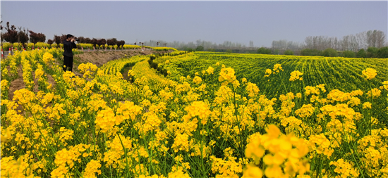 3月29日,商水縣鄧城鎮(zhèn)油菜花花開正盛。商水縣鄧城鎮(zhèn)沿沙河種植4000多畝黃色、粉色等多色油菜花,為沙河沿岸風(fēng)光增加了色彩,吸引了不少附近縣市群眾賞花游玩,同時也帶動了養(yǎng)蜂、榨油等相關(guān)產(chǎn)業(yè)。