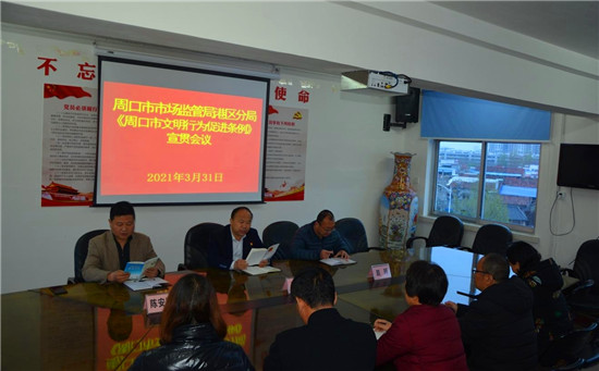周口市市場監(jiān)管局港區(qū)分局召開《周口市文明行為促進條例》宣貫會