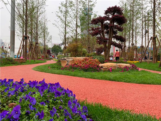 “風景真是太美了,咱們坐這兒歇會吧?!?月7日一大早,園里就熱鬧起來,有蹣跚學步的孩童,有鍛煉身體的中年人,也有互相攙扶依偎的老人。自打游園開放后,市民李大媽成了這兒的??停俺蚩站蛶еO子來這兒玩?!本G化帶一夜間“變身”,讓過往市民贊嘆不已,大家的幸福感、獲得感進一步增強。