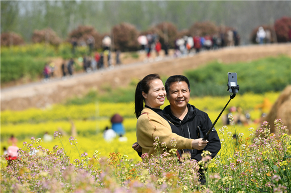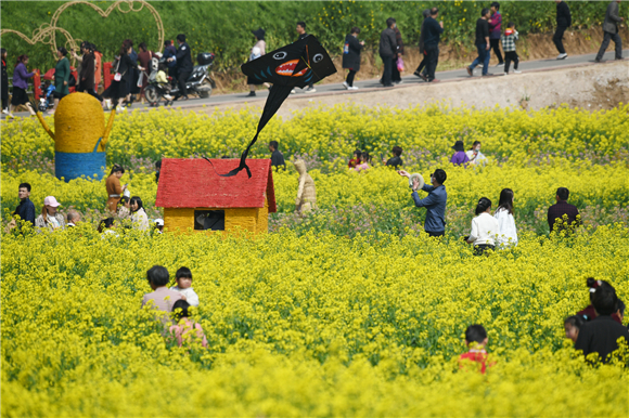 4月10日上午10時,商水縣首屆金色花田樂游匯在鄧城鎮(zhèn)沙河南岸隆重開幕,6000多畝的多彩油菜花,燦如云錦,構成今春沙河上游最為醉人的生態(tài)風景,吸引著人們從四面八方,紛至沓來,賞花游水,享受周末的休閑時光。③5