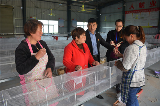 4月11日,商水縣平店鄉(xiāng)大朱莊村扶貧車間里留守女工正在編織漁網(wǎng)。該縣各級紀檢部門切實加強對扶貧資金資產(chǎn)的監(jiān)督管理,確保了扶貧項目產(chǎn)業(yè)正常運行,有效促進了廣大留守婦女家門口就業(yè)增收。圖為縣鄉(xiāng)紀委干部在扶貧車間調(diào)查了解資產(chǎn)管理群眾收益工人收入等情況。
