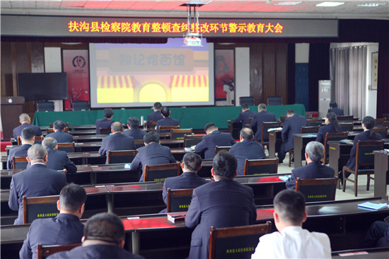 為推動政法隊伍教育整頓工作穩(wěn)步開展,扶溝縣檢察院堅持教育先導(dǎo),思想發(fā)動,通過開展警示教育活動,為查糾整改環(huán)節(jié)打好思想基礎(chǔ)。4月14日下午,扶溝縣檢察院組織全體干警集中觀看了《記憶中的燴面》《法不容私》《“保護傘”自身難保,“坐地虎”坐進監(jiān)牢》三部警示教育片,充分發(fā)揮以案說法說紀(jì)和警示震懾作用,教育引導(dǎo)干警增強紀(jì)律觀念和規(guī)矩意識,心存敬畏之心,筑牢拒腐防變思想防線。