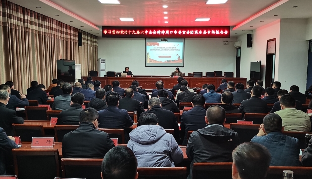 12月15日,學(xué)習(xí)貫徹黨的十九屆六中全會(huì)精神周口市委宣講團(tuán)商水縣專場(chǎng)報(bào)告會(huì)舉行,市委宣講團(tuán)成員高鵬作專題宣講報(bào)告,縣領(lǐng)導(dǎo)、鄉(xiāng)鎮(zhèn)辦事處和縣直單位主要負(fù)責(zé)人現(xiàn)場(chǎng)聆聽(tīng)。
