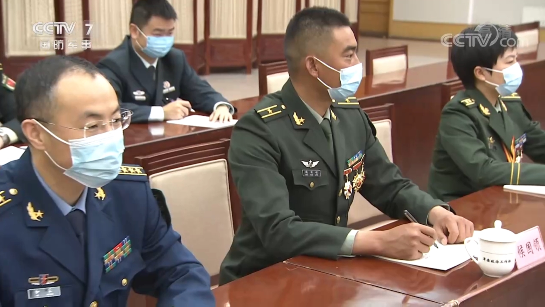 央視新聞截圖,侯國領(lǐng)(中)在座談會上認(rèn)真聽講