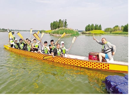 “咚咚咚……”近日,市城鄉(xiāng)一體化示范區(qū)引黃調(diào)蓄湖水面上水花翻涌,激昂的鼓點破空而來。2025“國緣杯”周口市第十屆中華龍舟賽的參賽隊伍正在進(jìn)行最后的沖刺訓(xùn)練。