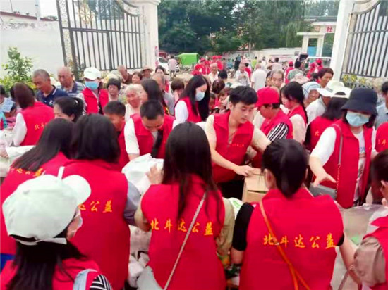 不一會(huì)兒,在志愿者組織下,來(lái)到現(xiàn)場(chǎng)的老人們便依次排隊(duì)領(lǐng)取了物品,滿臉充滿笑容?!懊看温犝f(shuō)北斗達(dá)的孩子們過來(lái)給我們包餃子吃,我都高興得一宿睡不著覺。得知今天孩子們給我們送餃子和粽子吃,我就起了個(gè)大早,別提心里多高興了?!?5歲村民李大爺手提著領(lǐng)到的水餃和粽子高興地對(duì)記者說(shuō)。