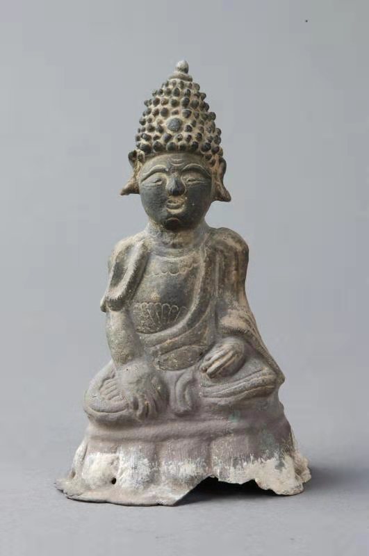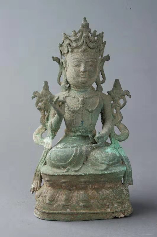 商水壽圣寺塔,高41.5米,為九級樓閣式磚塔。塔體從底至頂漸收勻稱,平面呈正六邊形。塔頂用鑄鐵鑄成葫蘆形寶頂,給人以挺拔雋秀之感。塔的層檐收放尺寸設(shè)計精妙,既保護(hù)了塔墻免遭雨雪侵蝕,又使塔體顯得莊重肅穆。塔身諸層外壁皆辟有圓券門、破子欞假窗,塔身各角砌出倚柱,檐下密布磚雕斗拱。塔內(nèi)砌出塔心室和盤旋梯道,可逐層登高至塔頂。塔第一層,南面辟門,門楣上刻“明道二年癸酉歲三月一日丙寅時戊寅日,葬舍利院主。僧□□建□□功德塔”。說明建塔的年代是北宋。塔室為穹窿頂。東南、西南兩壁有破子欞盲窗各1個,西壁另辟一拱券門,有踏道可登至第二層塔心室。第二層,南面辟門,東南、西南兩壁各砌一盲窗,東壁另辟一門可沿踏道進(jìn)入第三層。以上諸層大同小異。第四層,塔心室內(nèi)北墻嵌石雕佛像3尊,兩尊盤膝正面像,一尊盤膝背面像。剎柱下端插入塔心室,上端置鐵質(zhì)寶瓶,在不同部位還發(fā)現(xiàn)“風(fēng)調(diào)雨順”“國泰民安”“周王千歲千千歲”“大明嘉靖二十八年九月吉日”“河南周府施舍西華小瑤集壽圣寺塔一座”等字樣,這些都說明了明代嘉靖年間,又重修了塔身。1998年9月,在維修該塔時,在天宮清理出明代銅佛像3尊,白釉瓷盤1只,白釉黑花瓷碗、白釉褐花瓷碗各1個,刻印大彌陀經(jīng)1卷。銅佛像高約20厘米,其中一尊有“嘉靖三十一年”字樣,這一時期的周王為周敬王朱在鋌,這說明嘉靖三十一年周敬王朱在鋌為祈福曾將這批器物和經(jīng)卷,置入了塔頂?shù)蔫F質(zhì)寶瓶中。