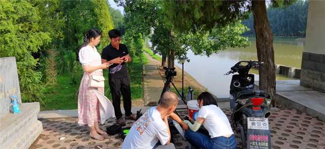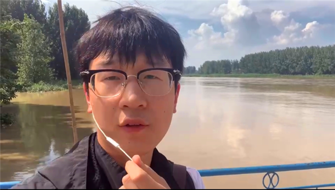 記者王丹、房杰等來到賈魯河橋小閘附近進(jìn)行直播
