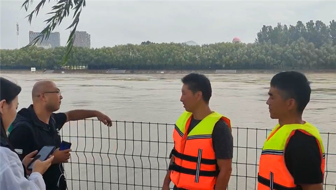 記者王慕晨采訪周口大道橋河段值班人員