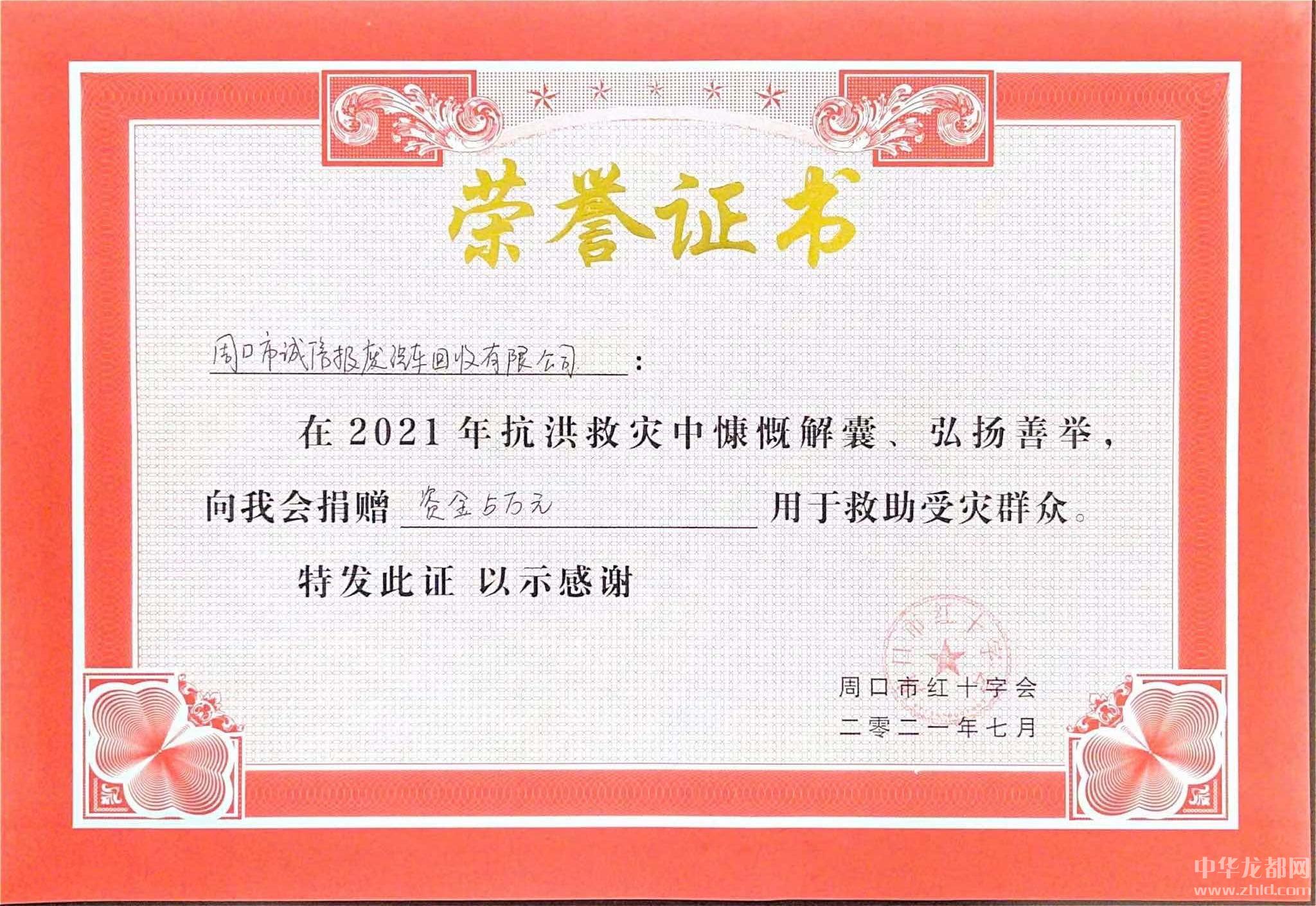 同時(shí),張站國(guó)作為周口市誠(chéng)信報(bào)廢汽車有限公司負(fù)責(zé)人,為切實(shí)履行企業(yè)的社會(huì)責(zé)任,周口市誠(chéng)信報(bào)廢汽車有限公司于2021年7月27日向周口市紅十字會(huì)捐贈(zèng)現(xiàn)金人民幣5萬(wàn)元,用于防汛救災(zāi)、群眾幫扶、衛(wèi)生防疫和災(zāi)后重建工作。