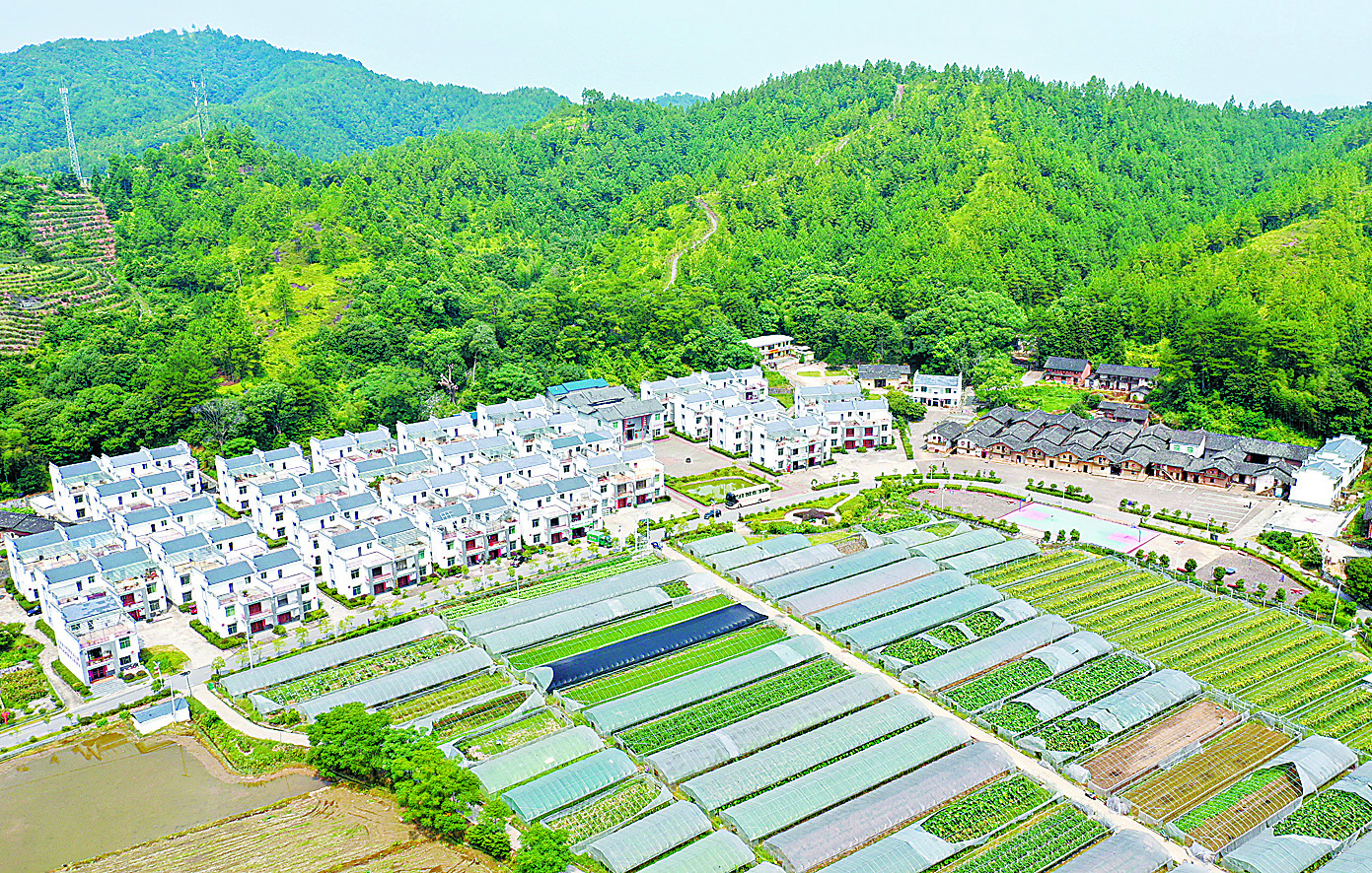 2012年6月,《國務院關于支持贛南等原中央蘇區(qū)振興發(fā)展的若干意見》出臺實施,華屋迎來了翻天覆地的變化。如今,華屋的低矮土屋早已拆了,取而代之的是66套嶄新的小康樓;村史樓前,一排排蔬菜、水果大棚鱗次櫛比,棚內(nèi)瓜果生機盎然;村莊左側(cè)特意保留的七棟土坯房整飾一新,已開發(fā)為紅色旅游景點。產(chǎn)業(yè)興旺,小康夢圓,華屋人過上了安居樂業(yè)、富裕幸福的火紅日子。