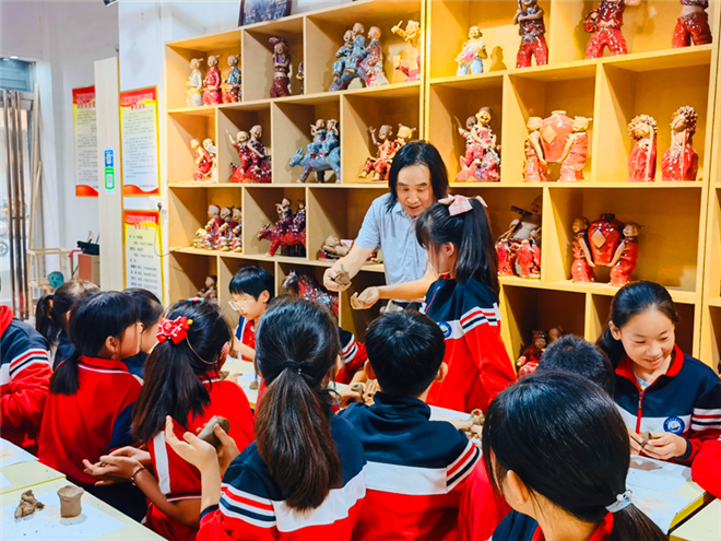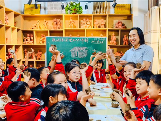 中小學(xué)生國慶節(jié)弘揚非遺文化 學(xué)習(xí)張振福泥塑鈞瓷技法