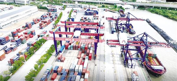 河道寬闊,巨輪穿梭;貨輪泊岸,裝卸繁忙;座座岸橋,擎臂而立;大船遠航,劈波斬浪……