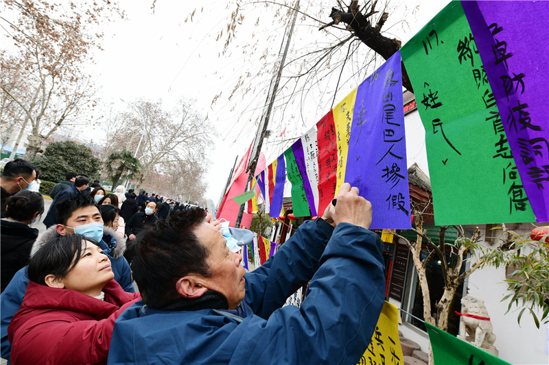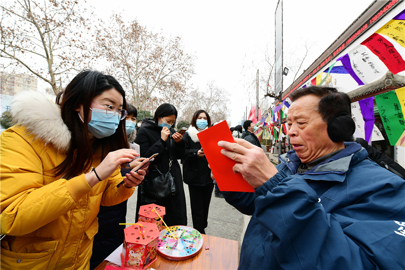 2月15日上午9時,由周口市文化廣電和旅游局、周口市文物局主辦,市博物館、市文物保護中心、市民協、華威民俗文化博物苑承辦,市民協燈謎學專委會、川匯區(qū)民協、川匯區(qū)燈謎學會協辦的元宵節(jié)燈謎競猜活動,主會場在市文化藝術中心廣場,分會場在華威民俗文化博物苑,吸引謎語愛好者踴躍競猜,甚為熱鬧。在華威民俗文化博物苑分會場的謎語現場,舉辦方以傳統(tǒng)形式進行,備了300條謎語,用毛筆將謎語寫在紅藍綠白紙張上,懸掛門前,讓市民競猜,氣氛熱烈濃厚。舉辦方還特意準備了跳繩、網球拍、乒乓球拍、飛鏢盤、跳棋等600份獎品,獎給猜中謎底的市民。①2