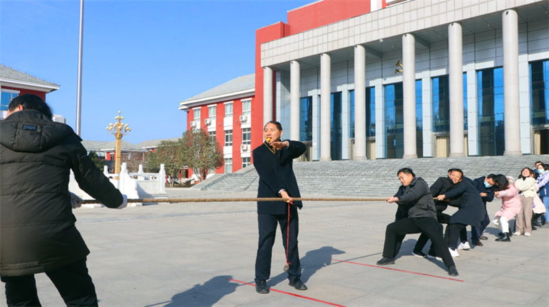 在拔河比賽中,校黨委書記、常務(wù)副校長(zhǎng)孟慶武親自當(dāng)裁判,各支部代表隊(duì)都派出最強(qiáng)陣容,齊心協(xié)力,勇?tīng)?zhēng)第一。隨著裁判的一聲哨響,比賽正式開(kāi)始,各位參賽隊(duì)員雙手緊握長(zhǎng)繩,壓低重心、咬緊牙關(guān),鉚足勁拼命往后拉。比賽過(guò)程中,參賽隊(duì)員心往一處想,力往一處使,齊心協(xié)力、勇往直前,用汗水詮釋了永不放棄、永不氣餒的拼搏和團(tuán)隊(duì)精神,激發(fā)了攜手奮進(jìn)、勇?tīng)?zhēng)一流的熱情。