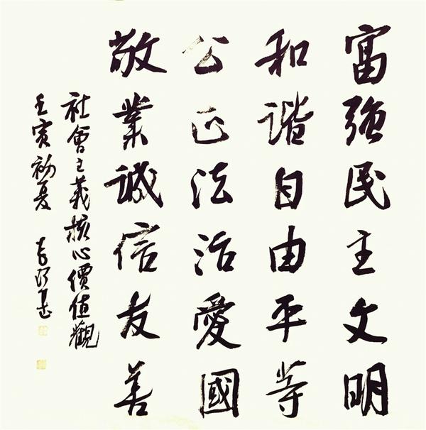 編者按:墨香浸潤沙潁河畔,筆力雄健魅力三川。為大力弘揚和培育社會主義核心價值觀,傳承周口地域文化特質(zhì)和精神標(biāo)識,日前,周口市文明辦、周口市文學(xué)藝術(shù)界聯(lián)合會、周口市書法家協(xié)會通過周口報業(yè)傳媒集團發(fā)出“作品征集令”,擬舉辦社會主義核心價值觀暨“道德名城”名家書法作品展。作品征集啟事發(fā)出后,周口籍書法名家及廣大書法愛好者紛紛投來精彩紛呈的書法作品,體現(xiàn)對社會主義核心價值觀的深刻理解,展示“道德名城、魅力周口”建設(shè)成果,講好周口故事,展現(xiàn)周口形象。今天起,本報特開設(shè)《社會主義核心價值觀暨“道德名城”名家書法作品》專欄,陸續(xù)刊發(fā)優(yōu)秀書法作品,以此營造弘揚和踐行社會主義核心價值觀的良好氛圍,用傳統(tǒng)書法技藝展現(xiàn)優(yōu)秀歷史文化資源,為“道德名城”增光添彩。敬請關(guān)注。