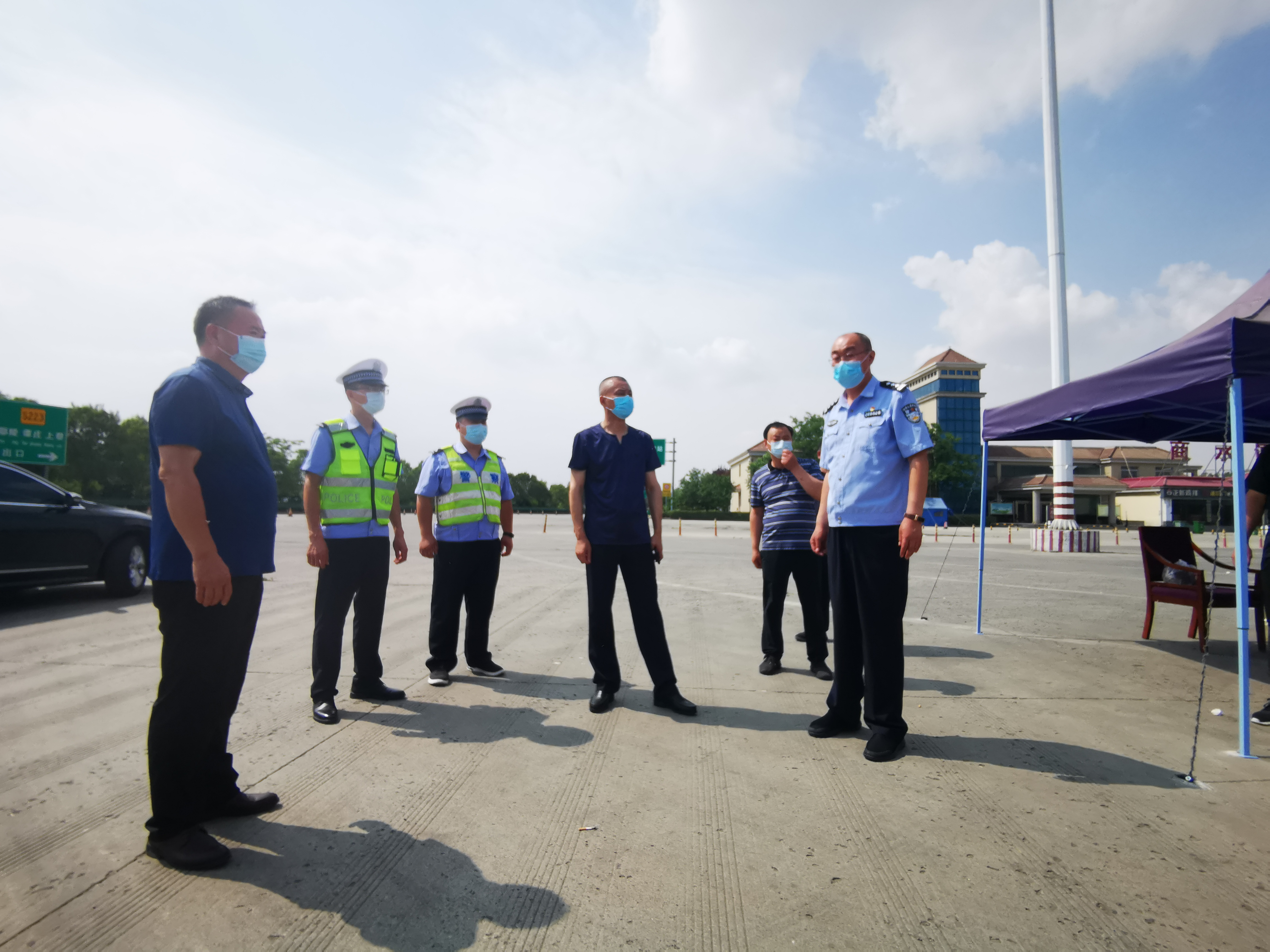 6月3日上午,商水縣副縣長、公安局長岳備戰(zhàn)一行慰問商水高速卡點(diǎn)執(zhí)勤防疫一線人員,感謝他們在節(jié)日期間的辛苦付出,并叮囑他們在做好防疫工作的同時,也要做好自我防護(hù),降溫防暑,確保個人安全。