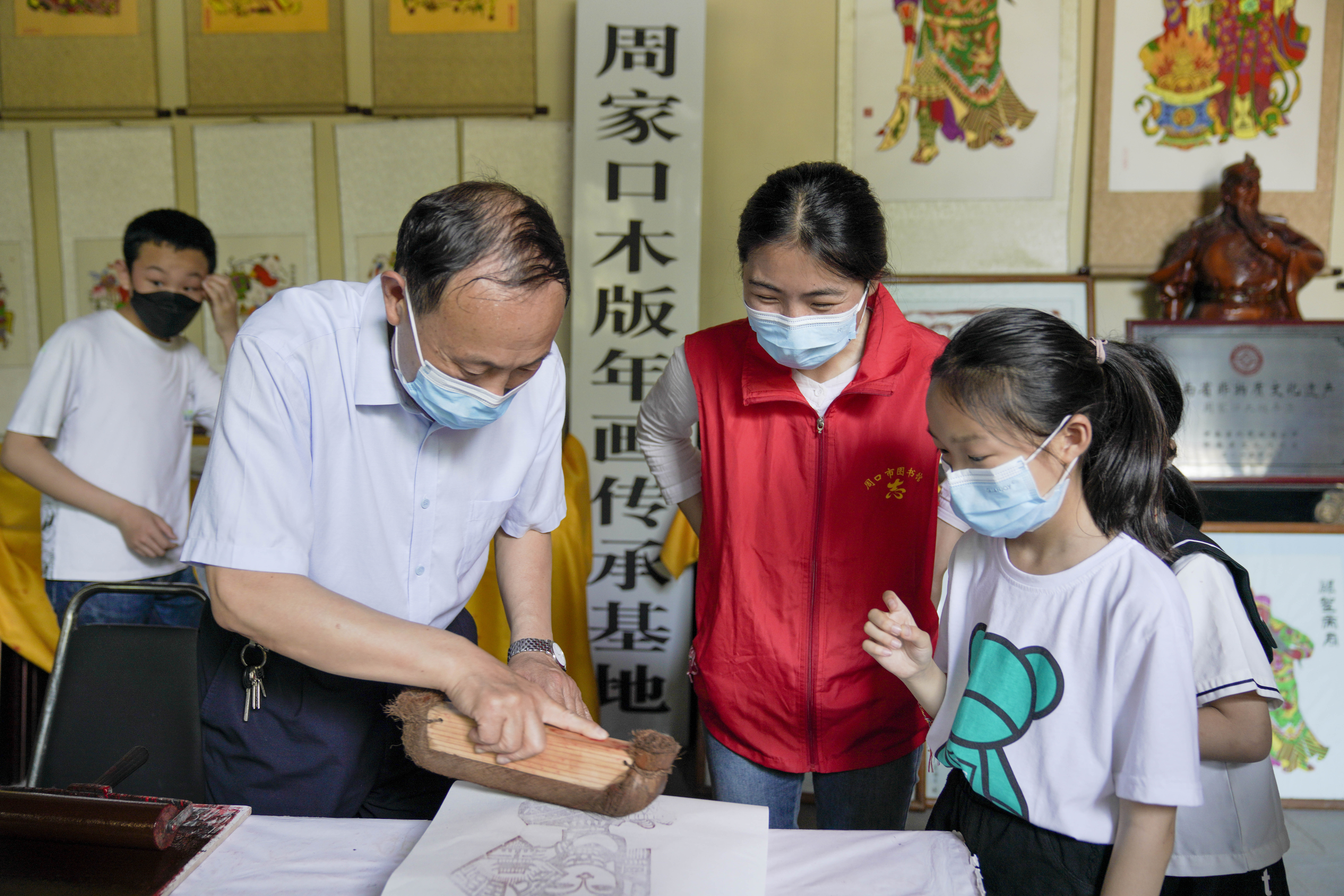 上午,20名小朋友身著漢服,佩戴香囊在周口市關(guān)帝廟民俗博物館認(rèn)真聆聽(tīng)講解員講述端午歷史意義及文化內(nèi)涵。隨后,孩子們?cè)谑〖?jí)非物質(zhì)文化遺產(chǎn)周家口木版年畫(huà)傳承人夏明月老師的帶領(lǐng)下,學(xué)習(xí)木版年畫(huà)的相關(guān)知識(shí)和制作過(guò)程,并親手制作了木版年畫(huà)?;顒?dòng)中,孩子們還為參觀的游客朗讀了《離騷》選段,感受2000多年前偉大的愛(ài)國(guó)主義詩(shī)人屈原熱烈的愛(ài)國(guó)情懷。