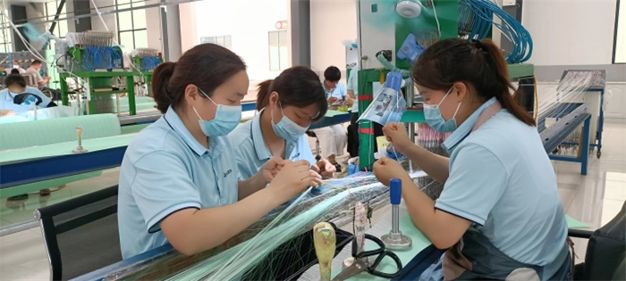 圍繞百億級(jí)裝備制造業(yè)產(chǎn)業(yè)集群發(fā)展,提升裝備制造業(yè)科技研發(fā)創(chuàng)新能力。以加快晶鑫科技上市為引領(lǐng),推動(dòng)傳統(tǒng)企業(yè)整體轉(zhuǎn)型升級(jí)。晶鑫科技產(chǎn)業(yè)園內(nèi)綠意盎然,高大寬敞的廠房?jī)?nèi)工人們?cè)诟髯詬徫簧嫌袟l不紊地忙碌著。拉絲車間,一臺(tái)大型編織機(jī)械靜靜地運(yùn)轉(zhuǎn)。機(jī)械的一頭,只有一名技術(shù)人員在操控臺(tái)上注視著屏幕。工廠負(fù)責(zé)人說,這是剛安裝調(diào)試不久的一臺(tái)進(jìn)口機(jī)器,自動(dòng)化程度和生產(chǎn)效率特別高,全國(guó)也沒有幾臺(tái)。編織車間,來自卞路口鄉(xiāng)董營(yíng)行政村的馬杰正在熟練地操作著一臺(tái)編織機(jī)。晶鑫科技辦公室工作人員李文玲說,那臺(tái)機(jī)器也是進(jìn)口設(shè)備,技術(shù)含量很高,只有業(yè)務(wù)精湛的工人才能操作。馬杰笑著說,由于她操作的機(jī)器先進(jìn)、技術(shù)要求高,工資也比一般人員要高出許多。來自北城街道辦事處的編制工周福榮,按計(jì)件每月也能拿到6000元左右的工資。晶鑫科技負(fù)責(zé)人說,由于疫情防控原因,部分外銷產(chǎn)品出口受到影響,但他們的產(chǎn)品在市場(chǎng)上仍是供不應(yīng)求。