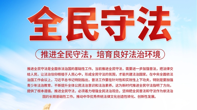 推進全民守法是全面依法治國的基礎性工作。當前推進全民守法,需要進一步加強普法,把法律交給人民,讓法治信仰根植于人民心中,形成全民守法的氛圍,才能共建法治國家。