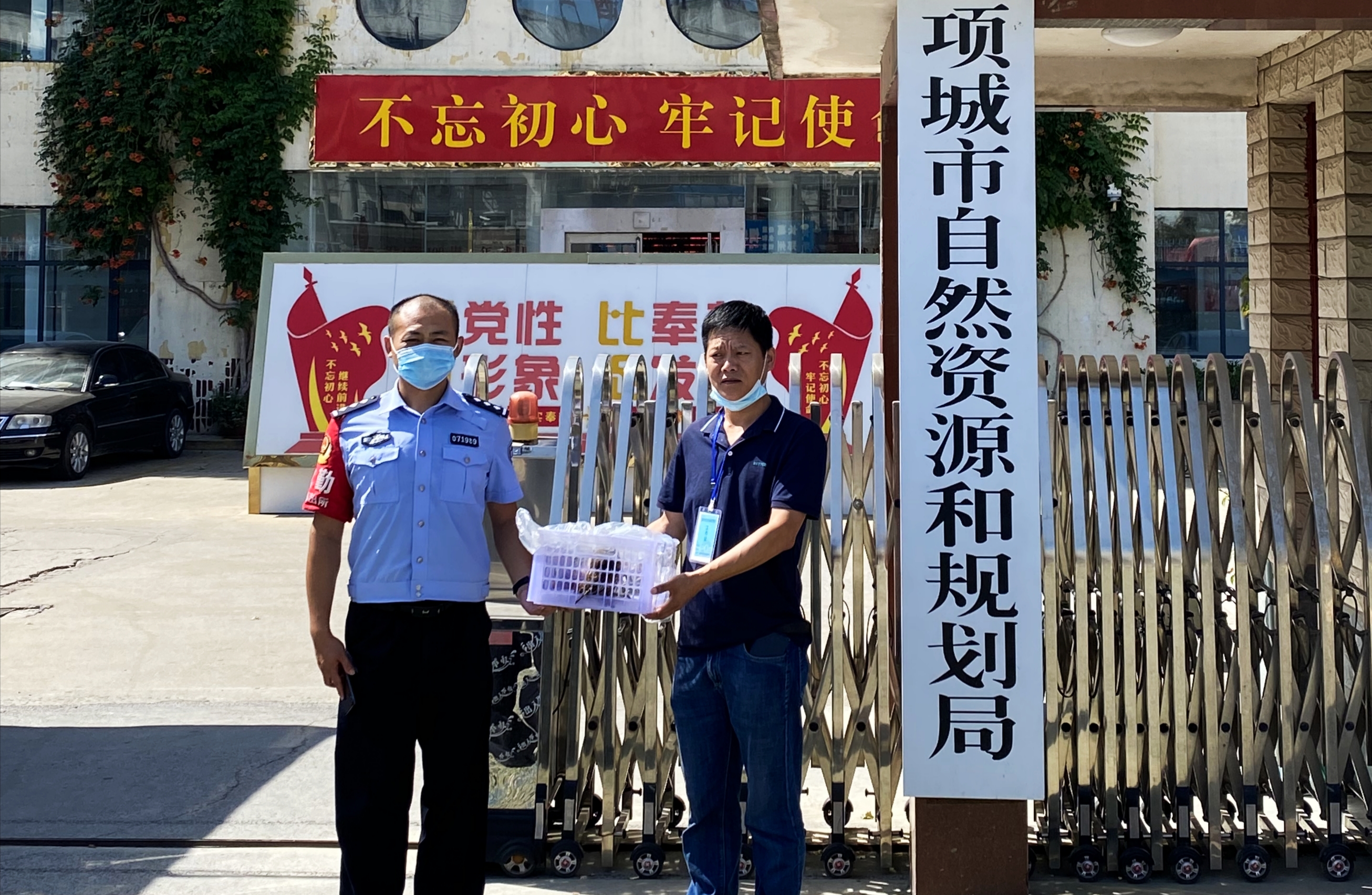 8月14日9時許,天氣炎熱,項城市公安局水寨派出所一民警駕車來到項城市自然資源和規(guī)劃局,向野生動物保護人員張向忠現(xiàn)場移送一只受傷的斑頭鵂鹠。