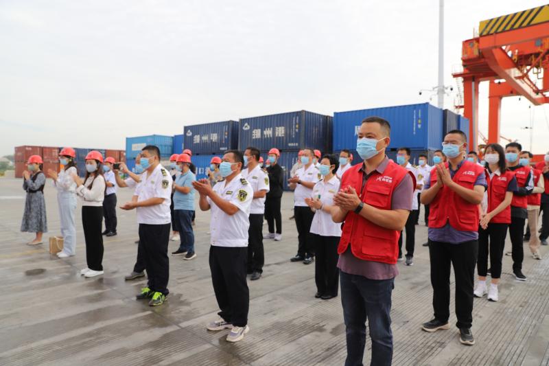 9月21日上午,由周口港區(qū)管委會、周口市港航局、周口報業(yè)傳媒集團、周口港城集裝箱有限公司聯(lián)合組織開展的豫貨出海 “周”向世界——周口六條貨運集裝箱航線大型異地采訪活動在周口中心港碼頭正式啟動。