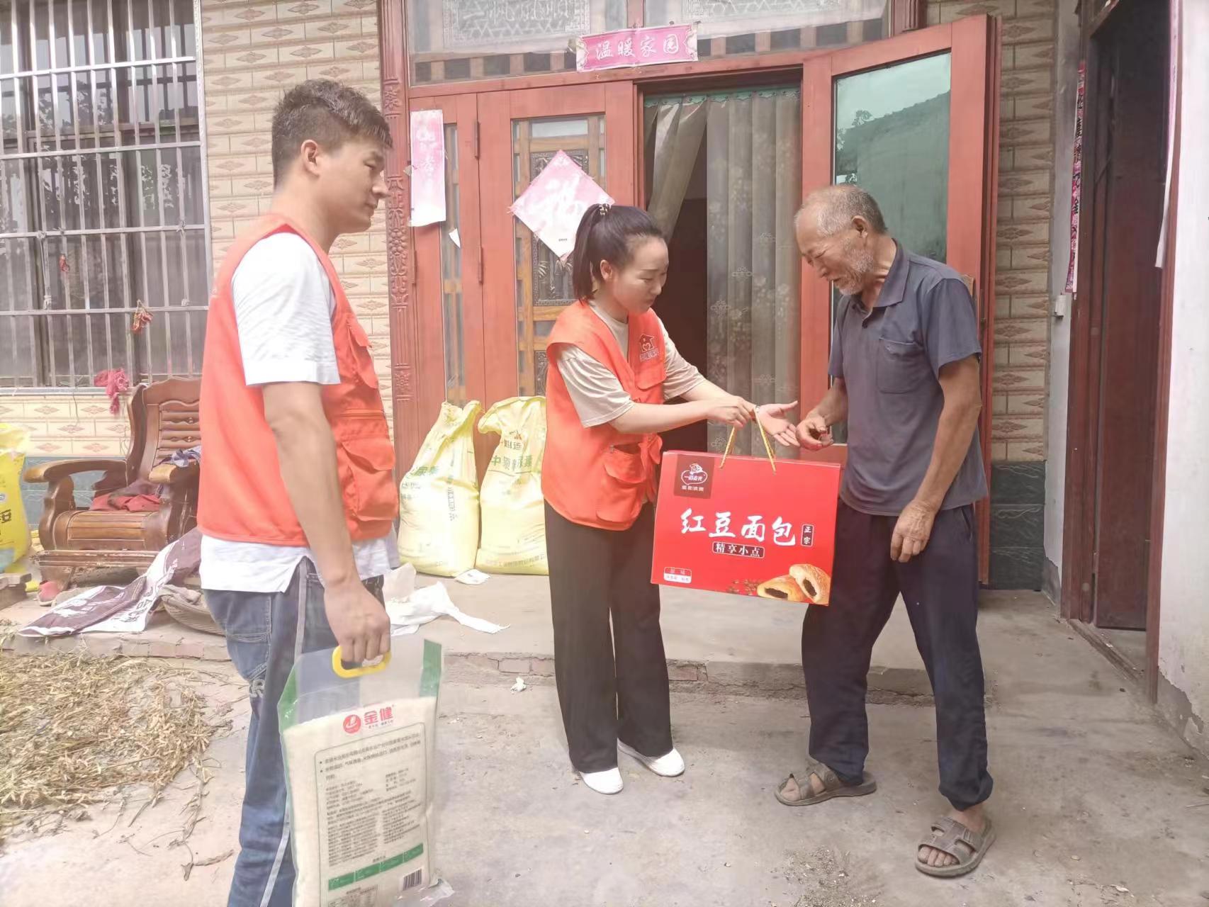 義演活動結(jié)束后,志愿者們帶著大米、面包等物品分組前往西營行政村、魏寨行政村、支亭行政村看望行動不便的老人。