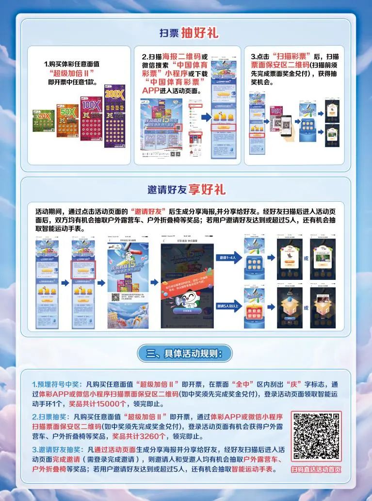 3.全國促銷活動細則,詳見“中國體育彩票”APP、微信小程序活動頁面,或登錄中國體彩網(wǎng)查詢相關(guān)信息。