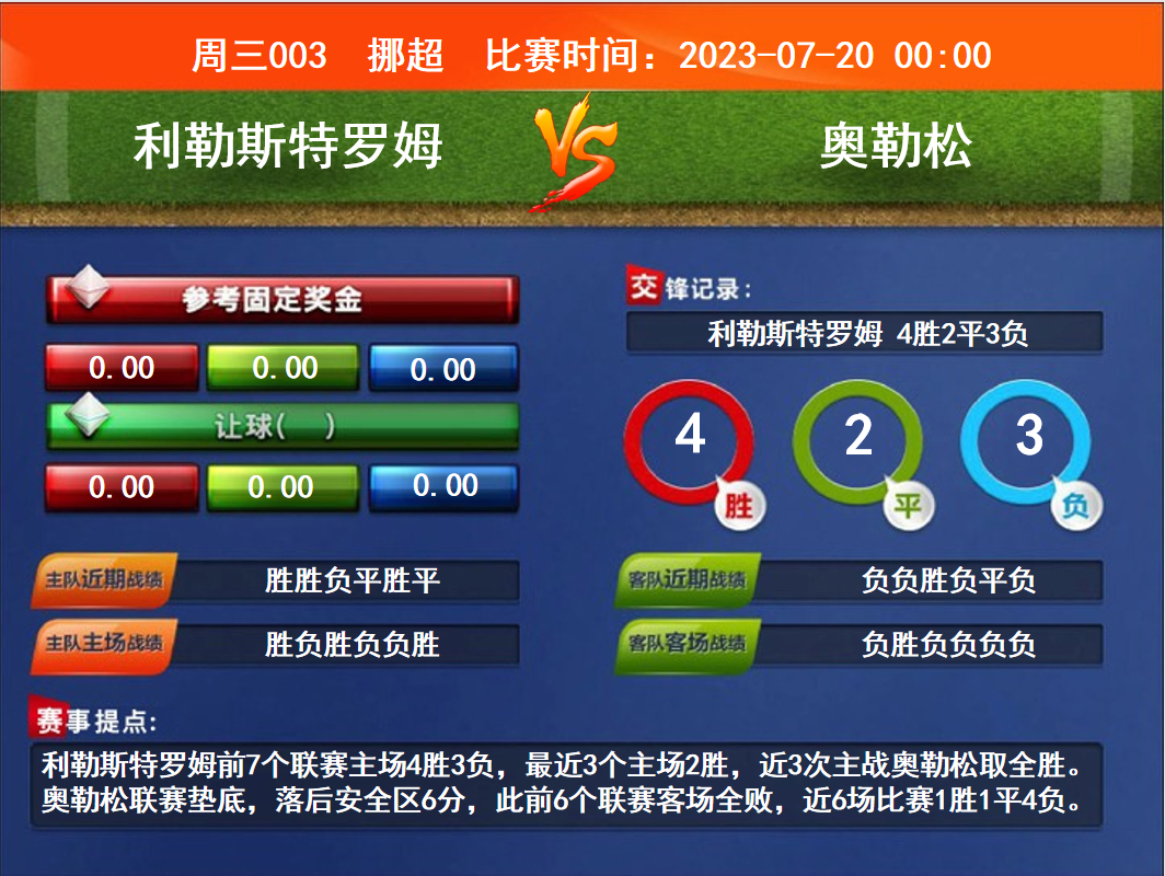 周三003 挪超 利勒斯特羅姆VS奧勒松