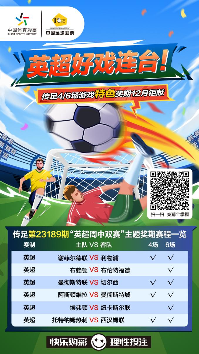第23189期傳足特色獎期已經(jīng)于12月3日20:00開售,將于12月6日22:00停售,并于12月8日開獎。其中謝菲爾德聯(lián)VS利物浦、曼聯(lián)VS切爾西、阿斯頓維拉VS曼城和熱刺VS西漢姆聯(lián)為4場進球游戲競猜賽事。