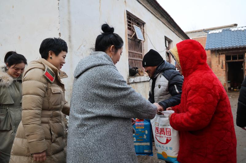2月6日,周口日?qǐng)?bào)社聯(lián)合三川巾幗創(chuàng)業(yè)聯(lián)合會(huì)和愛心企業(yè)河南宇杰梵商貿(mào)有限公司相關(guān)人員,到淮陽區(qū)馮塘鄉(xiāng)劉莊村困難群眾家中走訪慰問,送去節(jié)日慰問品,與他們促膝談心、親切聊天,詳細(xì)詢問他們的身體、生活情況,為他們送去新春的祝福。
