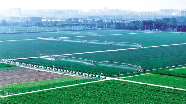 7月18日,在扶溝縣城郊鄉(xiāng)高標(biāo)準(zhǔn)農(nóng)田里,大型移動灌溉設(shè)備正在為農(nóng)作物澆水。日前,扶溝縣掀起了以抗旱澆水、除草施肥、病蟲害防治為主的農(nóng)作物夏管工作,為秋糧豐收奠定堅實基礎(chǔ)。黃金峰 攝