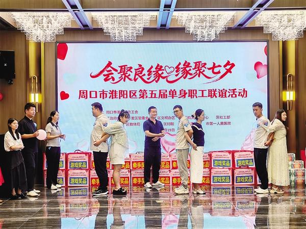 本報訊(記者 侯俊豫 通訊員 張艷榮 文/圖) 8月19日,淮陽區(qū)第五屆單身職工聯(lián)誼活動在希爾頓花園酒店舉行。區(qū)人大常委會副主任孟華,區(qū)政協(xié)副主席劉衛(wèi)潔,區(qū)政府黨組成員、區(qū)總工會主席丁永華,周口先進(jìn)制造業(yè)開發(fā)區(qū)管委會主任張健出席活動。70余名單身職工共赴“甜蜜之約”。