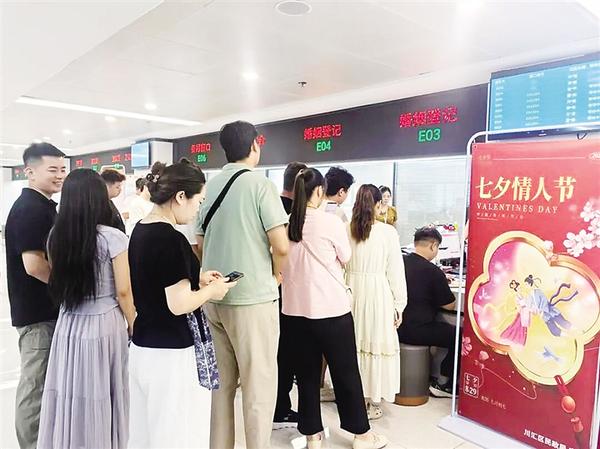 近年來(lái),隨著人們對(duì)傳統(tǒng)節(jié)日和文化的重視,像七夕節(jié)這樣富有文化內(nèi)涵的傳統(tǒng)節(jié)日,成為新人辦理結(jié)婚登記的熱門(mén)選擇。此外,因諧音寓意美好而備受青睞的“520”“521”等“數(shù)字節(jié)日”,也保持著較高的結(jié)婚登記熱度。為積極應(yīng)對(duì)此次結(jié)婚登記高峰,確保每對(duì)新人都能高效、便捷、順利地完成結(jié)婚登記,川匯區(qū)民政局婚姻登記處提前制訂了工作預(yù)案。